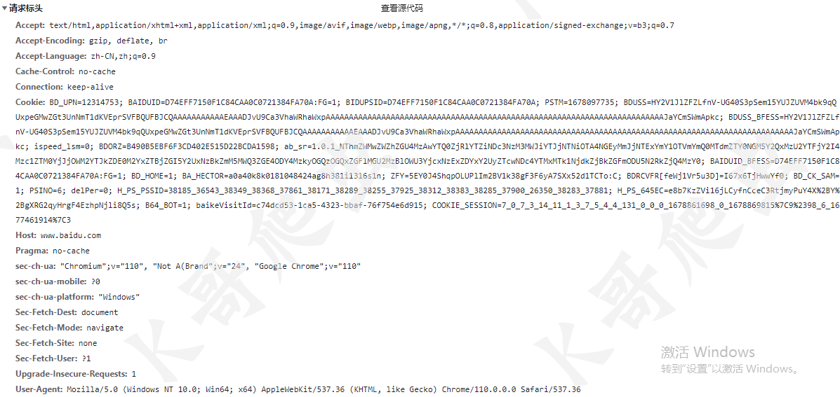 3. 请求头信息: 请求头信息中记录了客户端发起请求时携带的头信息。