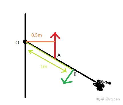 在A处施加一个竖直向上的力(红色),支点向该力的方向引垂线距离为0.5m,假设力的大小为2N。可以看出这个力是在把拖把向上提,也可以看做是绕着O点做逆时针运动,力矩求得大小为2N*0.5m=1N·m,逆时针方向为正,就是1N·m