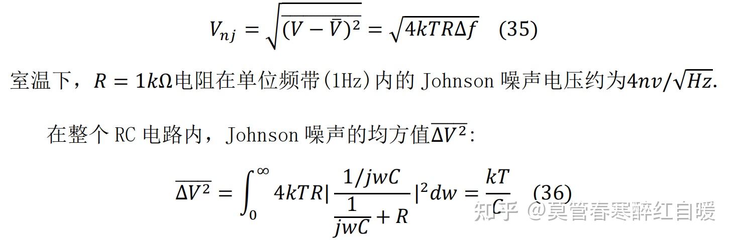 根据奈奎斯特定理,在 \Delta f 频带内电阻两端的均方根Johnson噪声电压为: