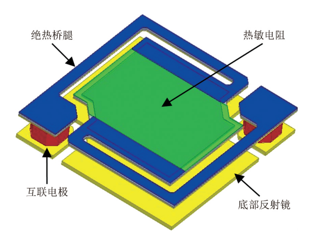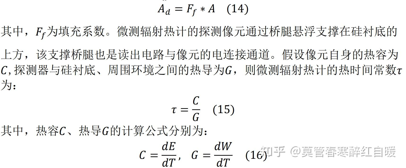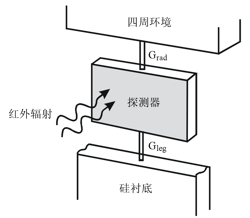 上式右侧第一项是探测器吸收的目标红外辐射,第二项是来自衬底热沉的红外辐射,第三项是微测辐射热计向周围环境辐射的红外辐射。