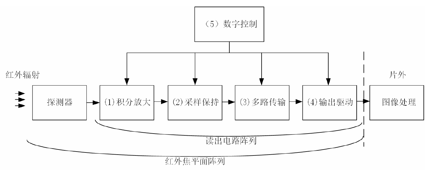 红外探测器的读出集成电路(ROIC)是红外探测器和接下来的信号处理电路之间的接口电路,主要是提取探测器生成的光生电流信号。常见的读出电路类型包括:电荷注入器件(CID)、电荷成像矩阵(CIM)、电荷耦合器件(CCD)、互补的金属-氧化物-半导体器件(CMOS)。其中,CMOS和CCD可以采用硅基材料工艺制备,早期的ROIC采用的是CCD,随着CMOS工艺的改进,CMOS成为了读出电路的主流方案。本文讲述的是CMOS读出电路[5]。