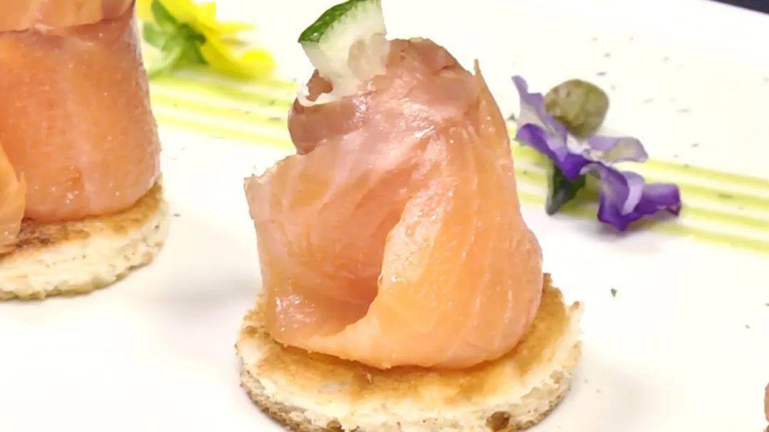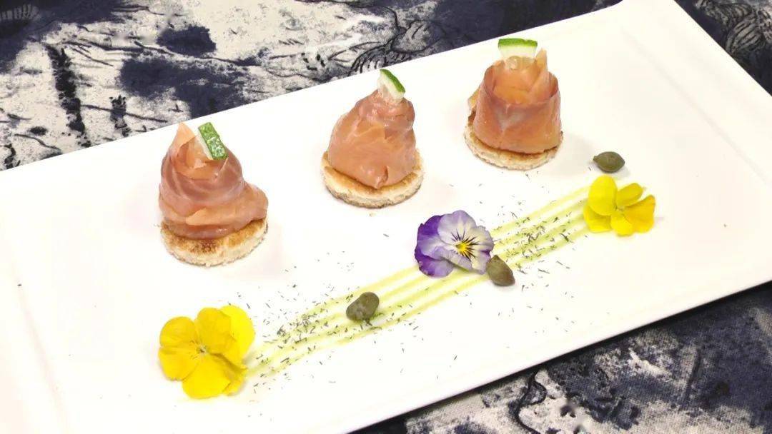前菜:烟熏三文鱼玫瑰花开口三明治
