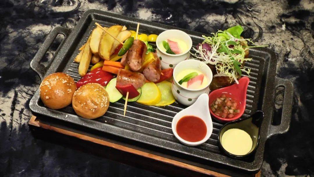 套餐:芝士牛肉卷、日式蟹柳炖蛋、彩椒罗勒香肠串