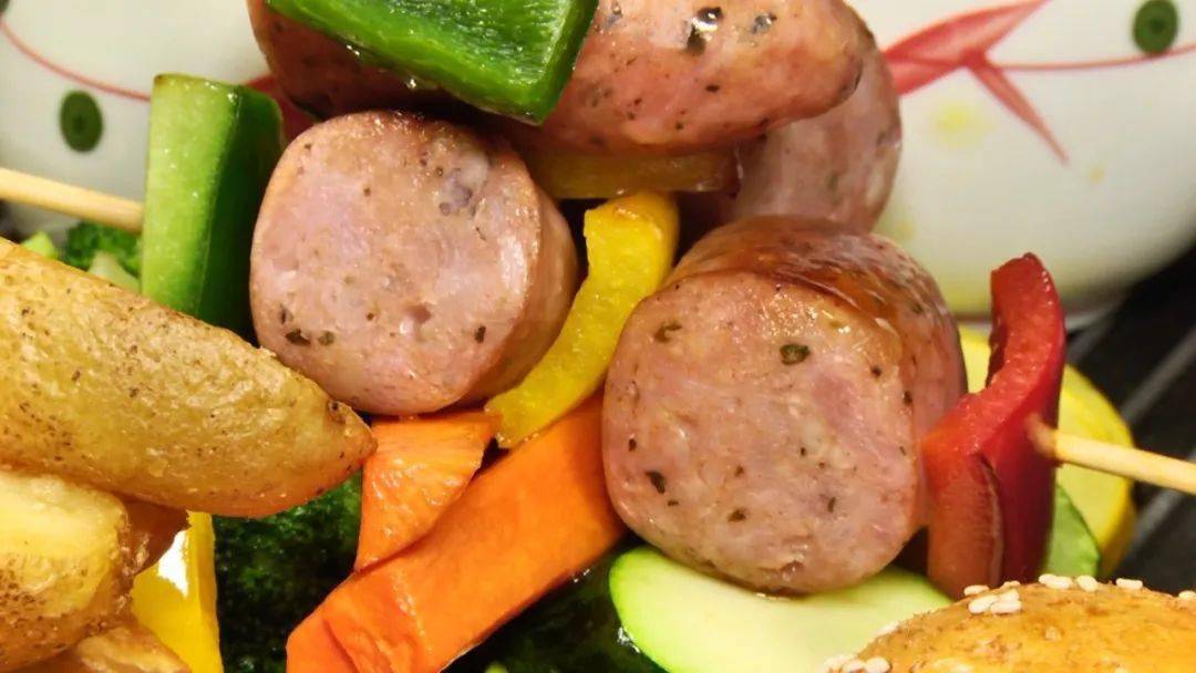 香肠满满都是肉,用罗勒等香料煎烤后,