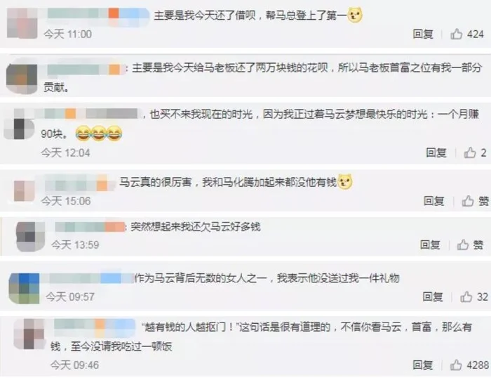 还有网友表示,马云登上首富,有自己的贡献。