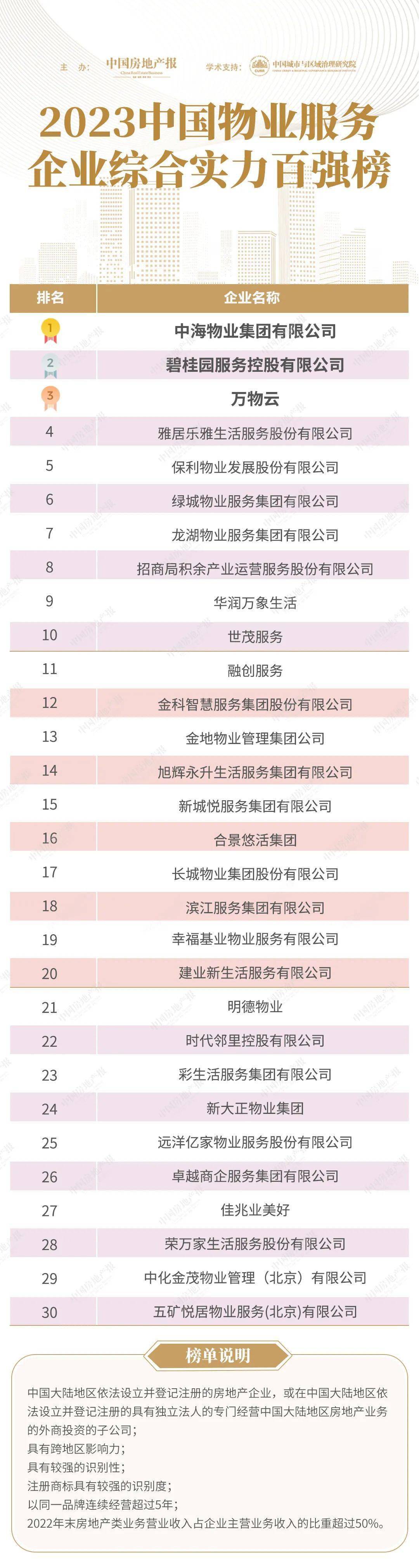 2023物业百强榜单出炉:中海物业碧桂园服务万物云包揽前三名(中海物业是500强吗)