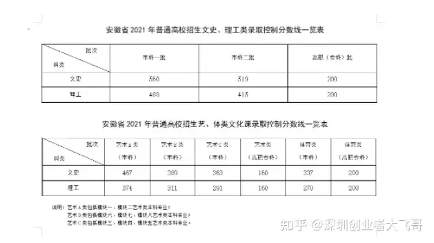 据安徽教育厅23日官方微信消息,安徽2021年高考文科一本线560分,二本线519分;理科一本线488分,二本线415分。