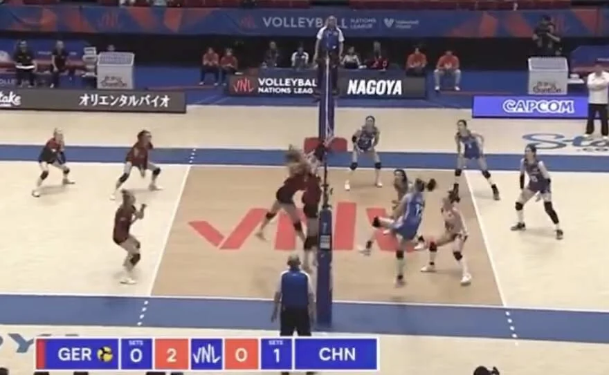 首局比赛,中国女排一上来就迅速进入状态,在稳定一攻的情况下充分打好防守反击,主攻李盈莹、王云蕗在四号位多次强攻打中,中国队以17-11领先,局末阶段,中国队继续保持稳定,以25-19先胜一局。第二局,刁琳宇充分调动各个位置的进攻,袁心玥、王媛媛和龚翔宇相继扣球得手,中国队以13-10领先。随后,中国队顶住对手冲击,以25-20拿下。第三局,中国女排以3-1开局。随后,李盈莹在四号位多次暴扣得分,帮助球队以11-7领先。落后的德国女排在攻防配合上出现不少失误,中国女排以25-22拿下全场比赛!