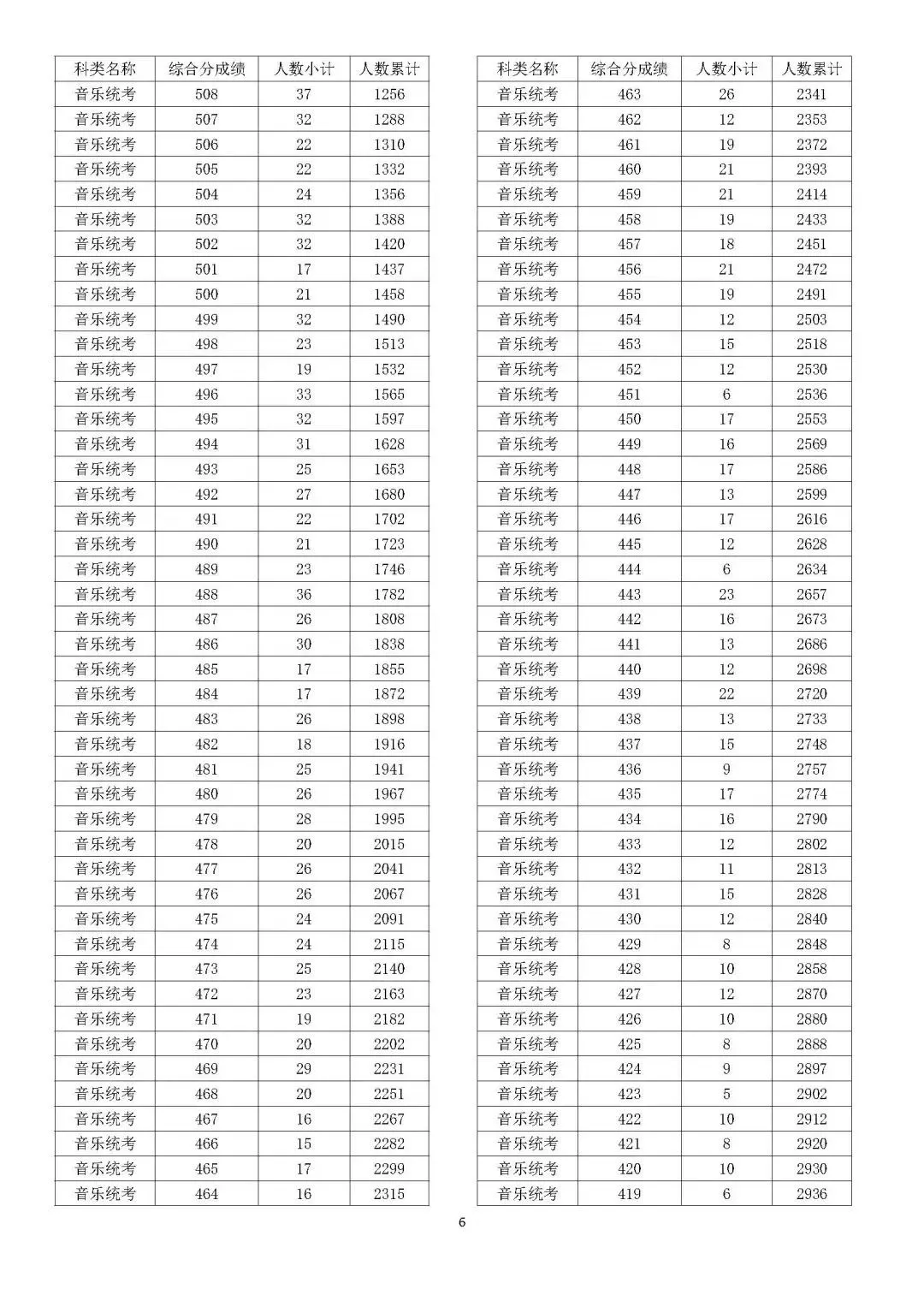 体育类考生位次按考生的综合分成绩高低排定。综合分相同时,按省统考术科成绩、高考总分、文化总分、语文数学总分、语文或数学单科成绩、外语成绩、选考科目单科成绩高低排序。全部相同者为同位次。