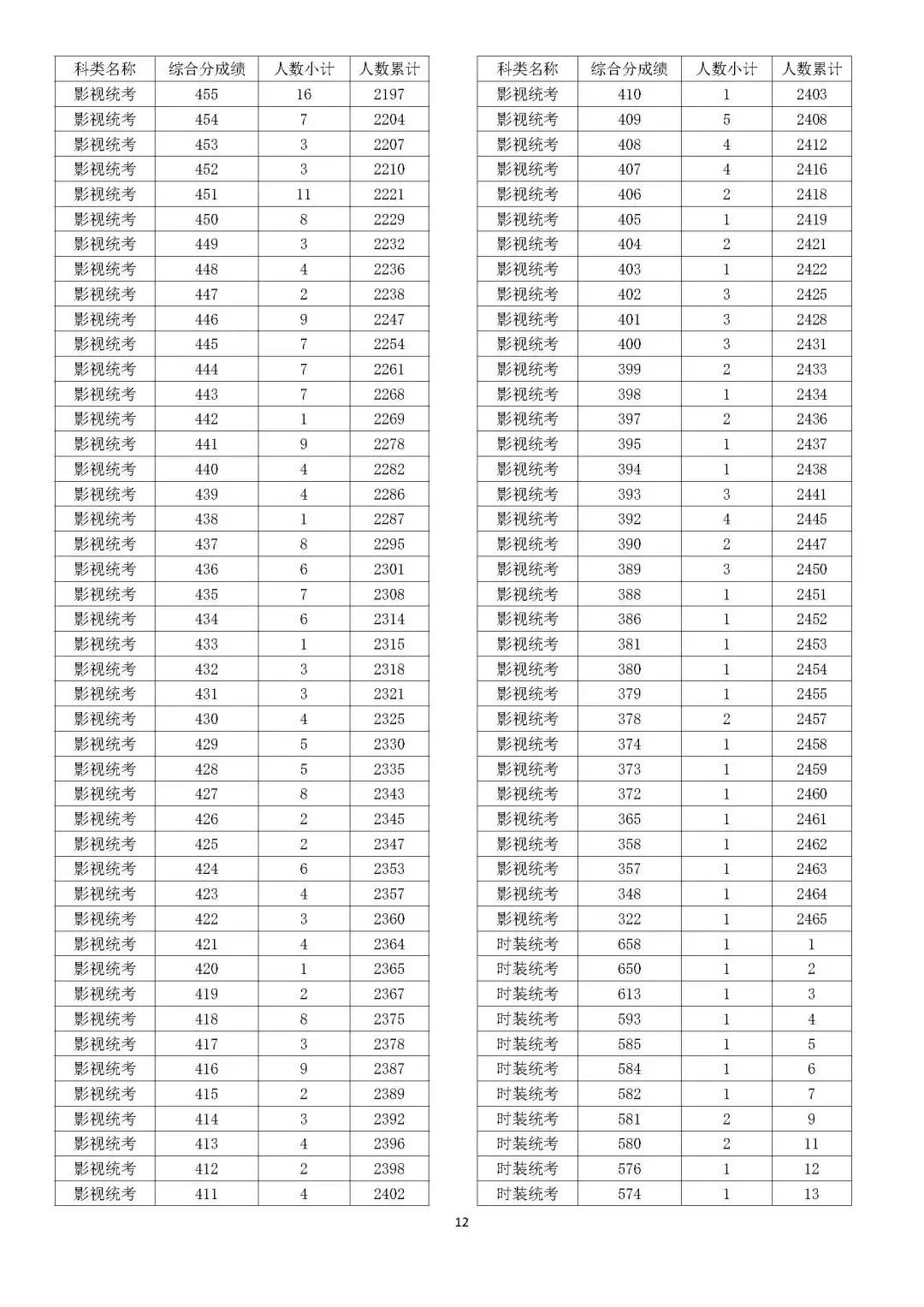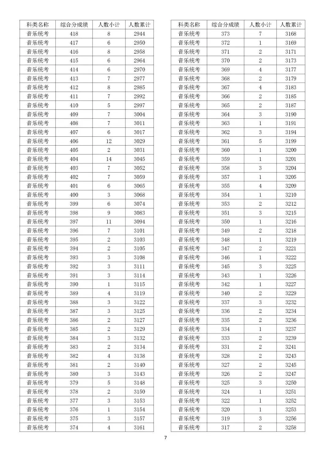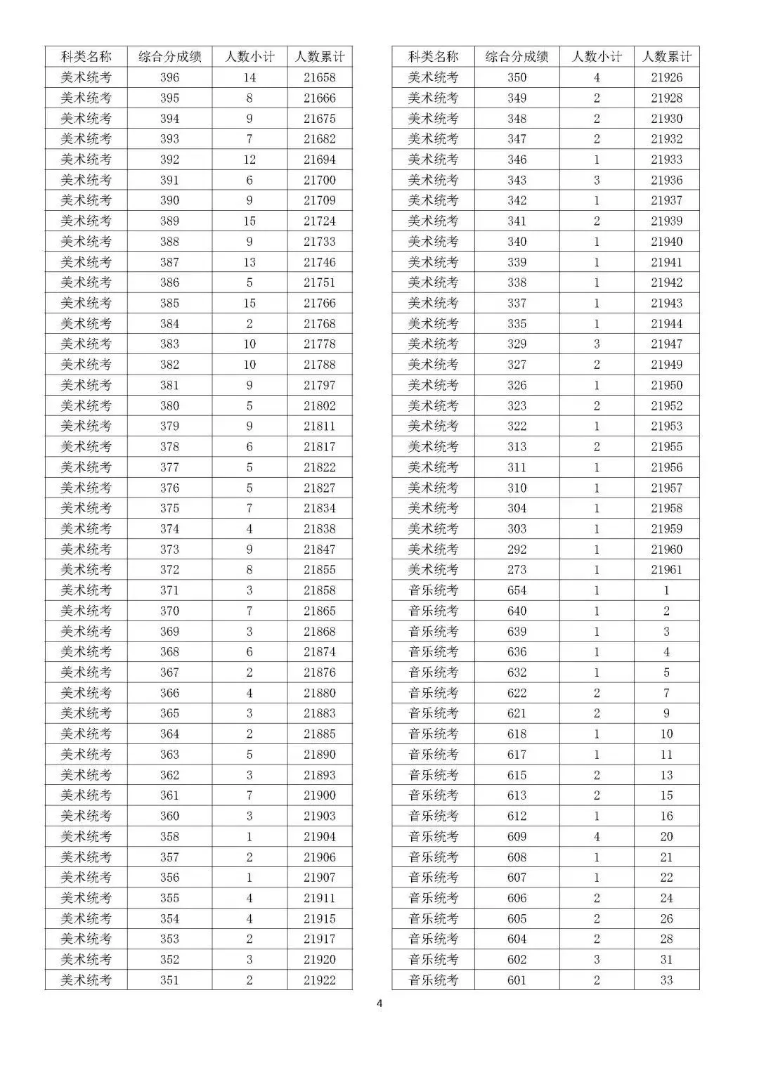 考生综合分分段表