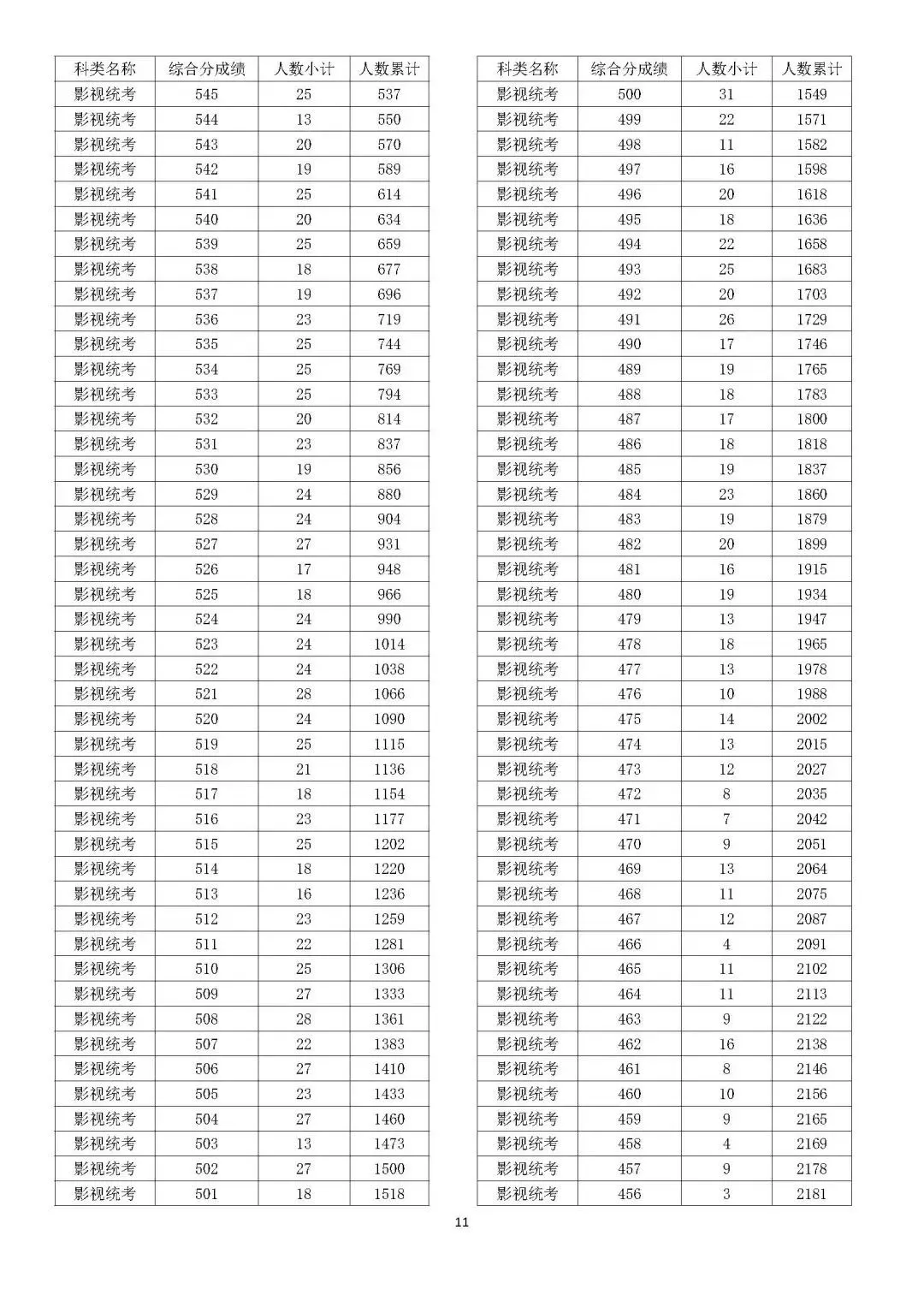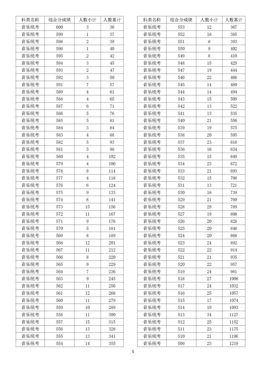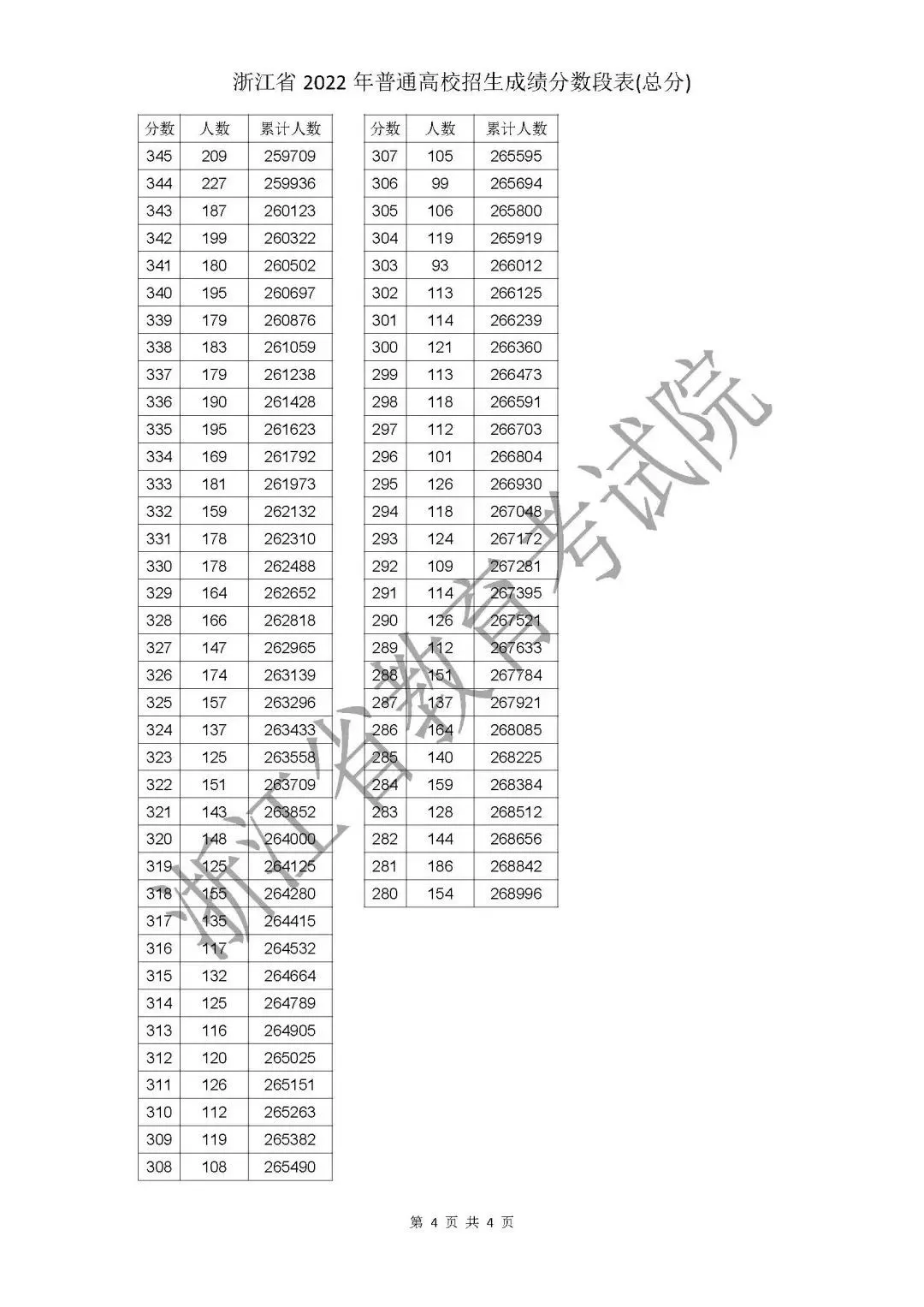 考生综合分分段表