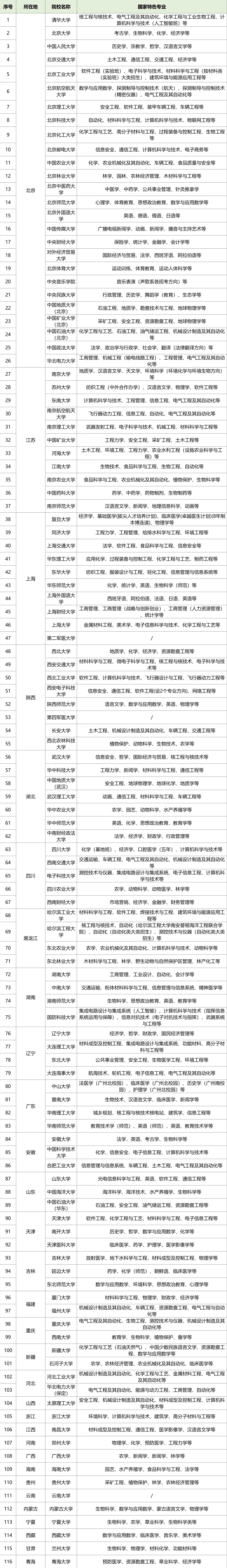 全国211高校及特色专业名单