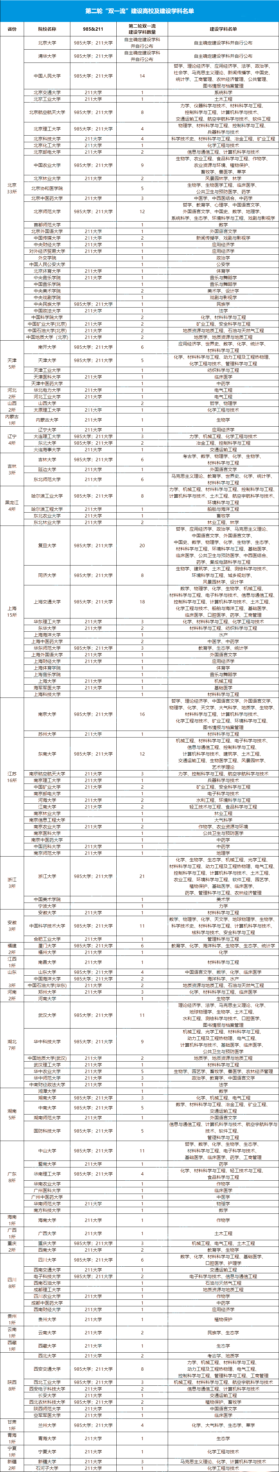 双一流高校名单