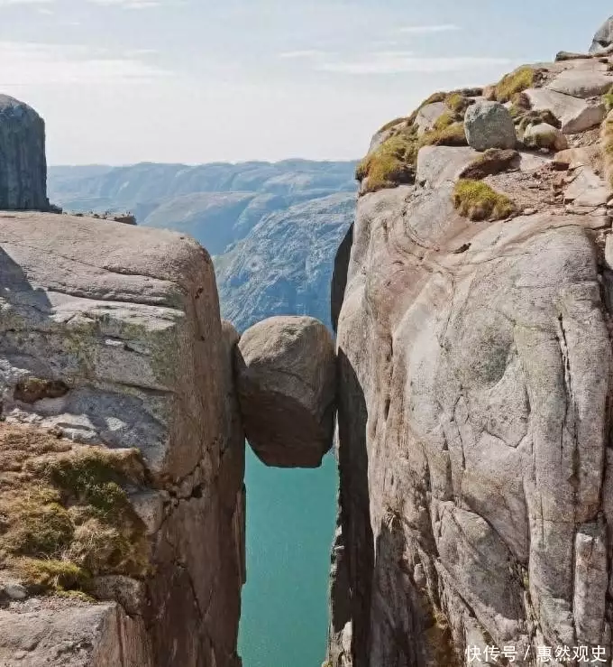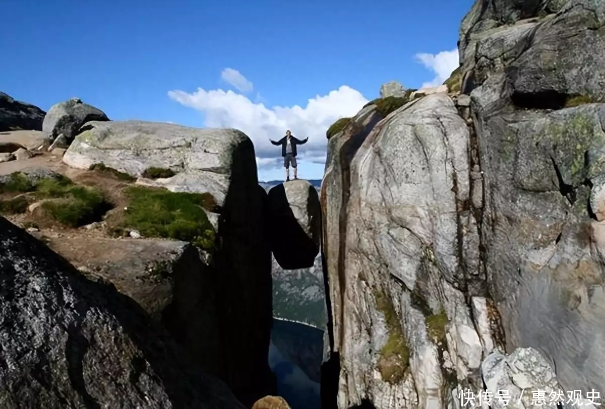 除了国内的一些奇石,在国外也有很多石头就像是天工造物一般,彰显着大自然的神奇之处。挪威的“奇迹岩”就是众多奇石景观中最吸引人的一个。